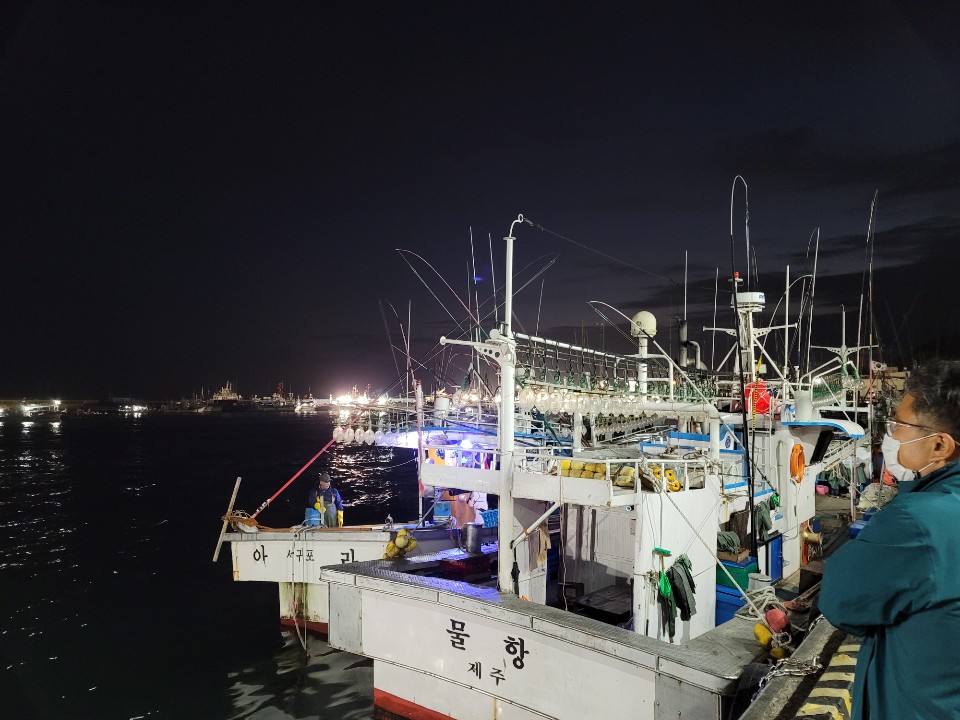 며칠전 올래밥상 제주산 수산물 입고를 위해서 출항한 배가 새벽에 입고를 한다하여