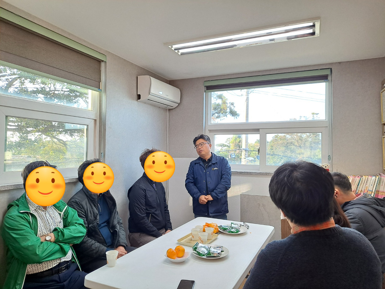 전날에 온 1팀과 오후 4시에 제주올래씨푸드 원물 공장에서 만나 견학 일정이 잡혀 있었습니다.