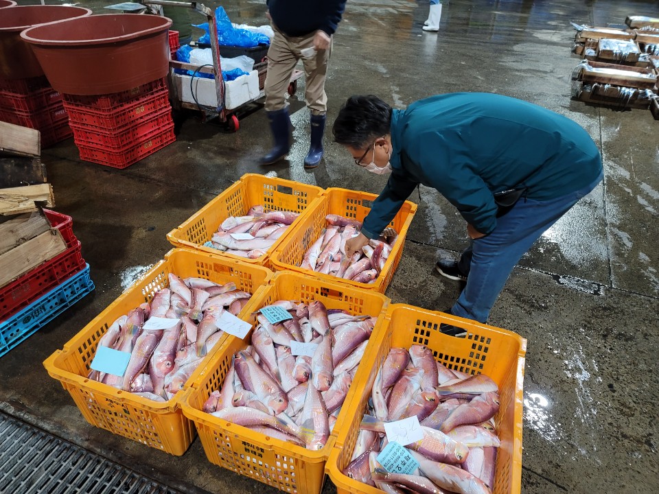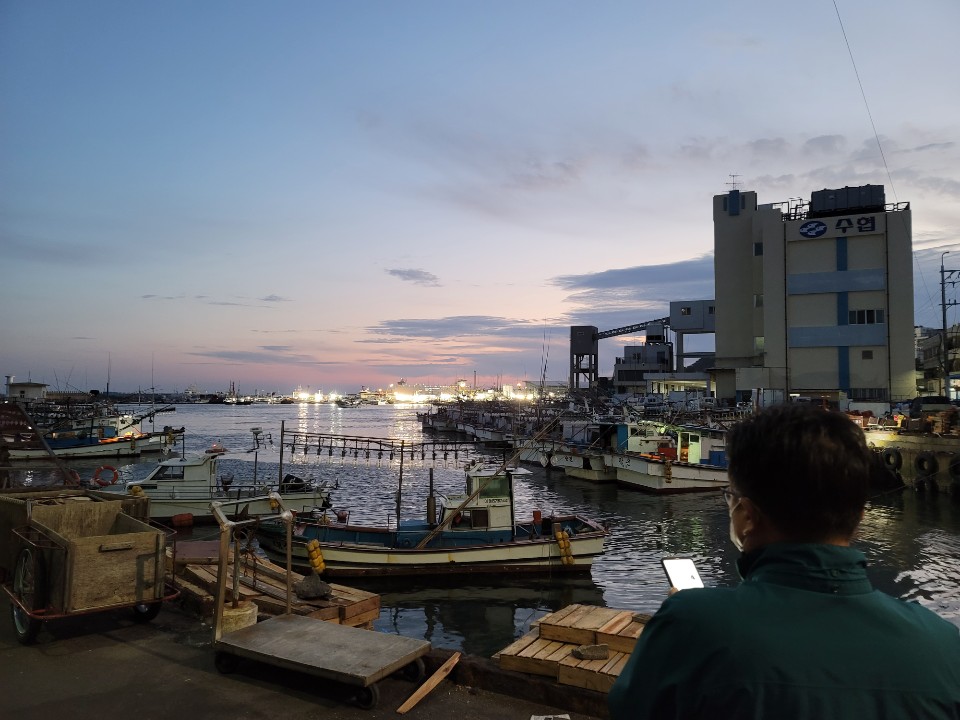 아 때마침 제주산 생선으로 가득 찬 배가 들어오군요