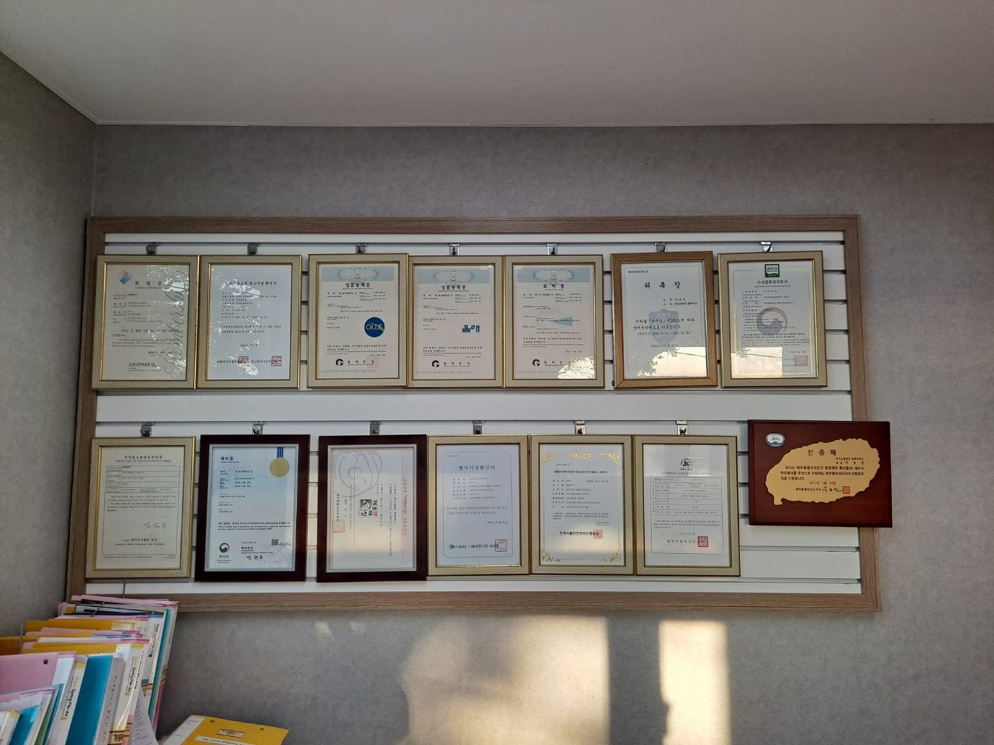 홍보실 한편에 마련된 인증 마크와 특허증도 눈에 띄었습니다.
