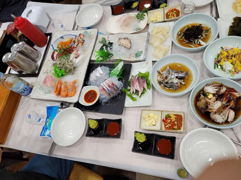 저녁식사로 당일 잡은 신선한 제주산 회를 먹으면서 1일차를 마무리하였습니다.