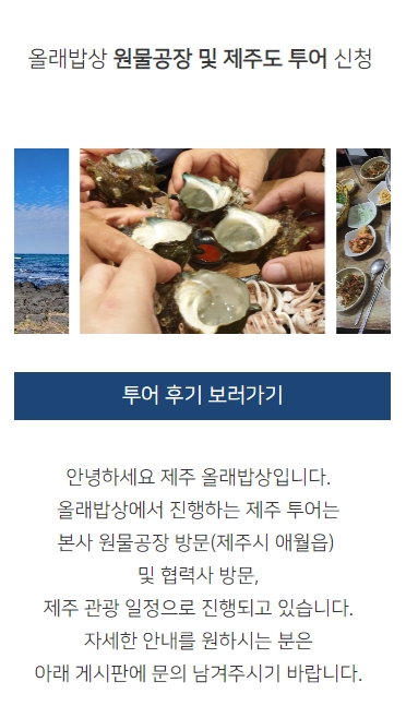 제주산 수산물을 사용하는 올래밥상에 대한 신뢰도가 더욱 커지는 것 같습니다.