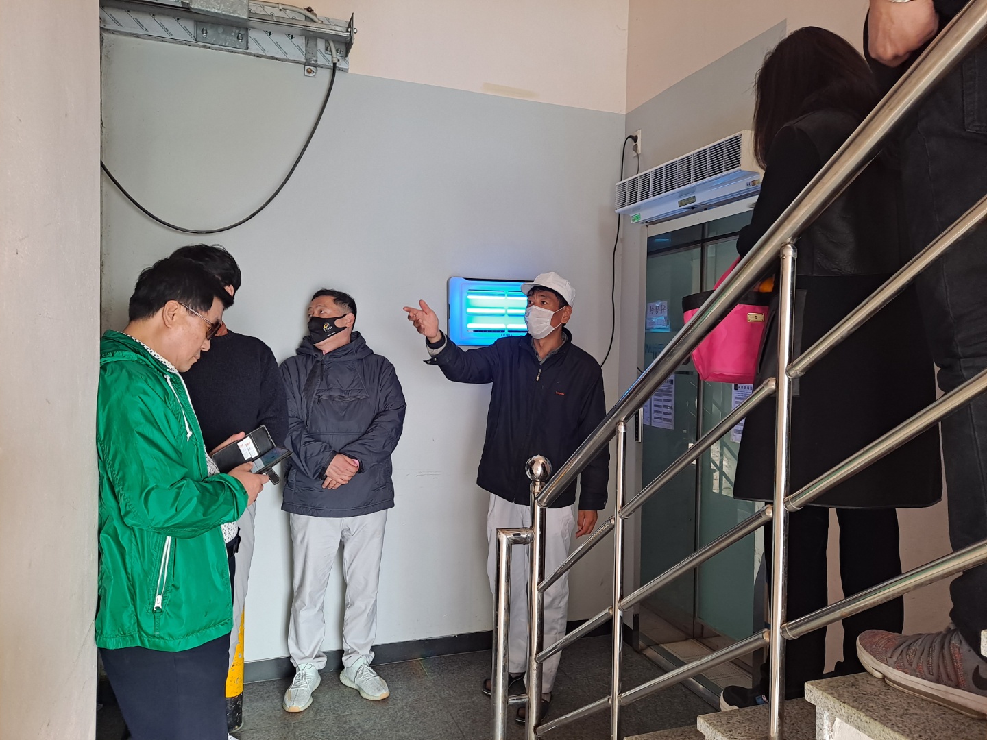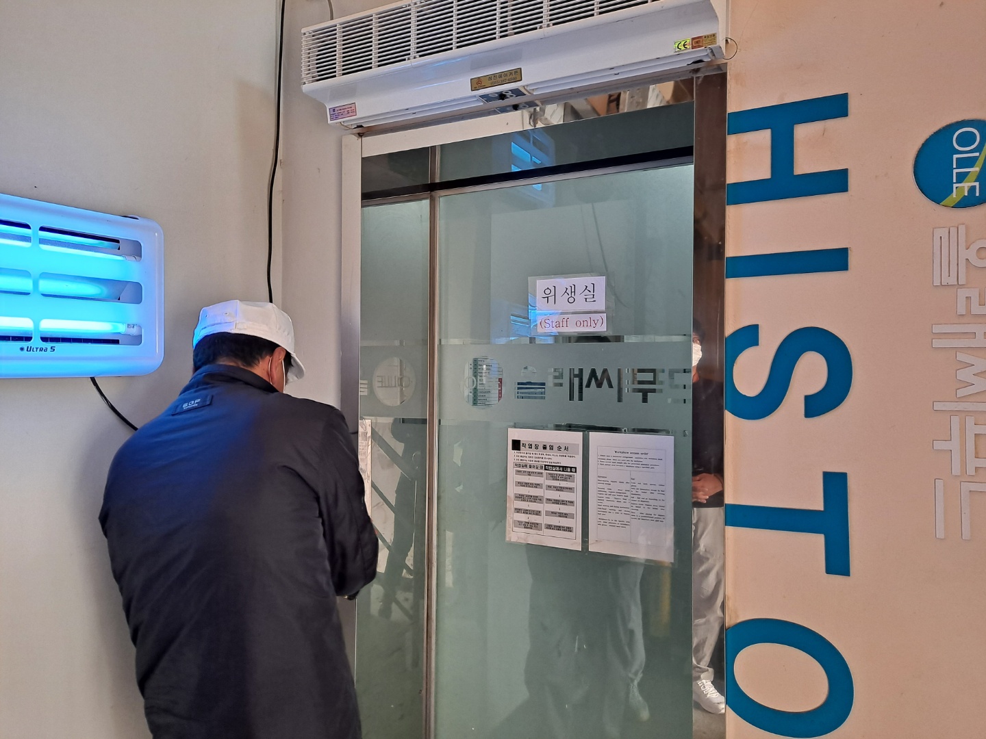 위생실에 들어가기 전 간략한 설명을 하고 있는 모습입니다.