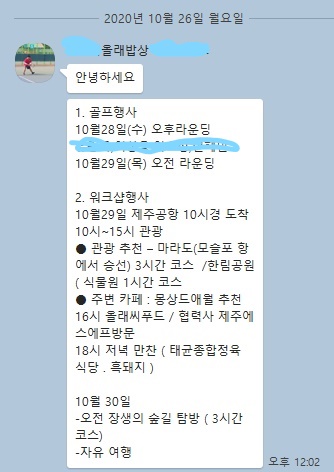 그 외로 골프랑 제주 관광도 함께 할 수 있어서 신청하게 되었다고 하셨습니다.