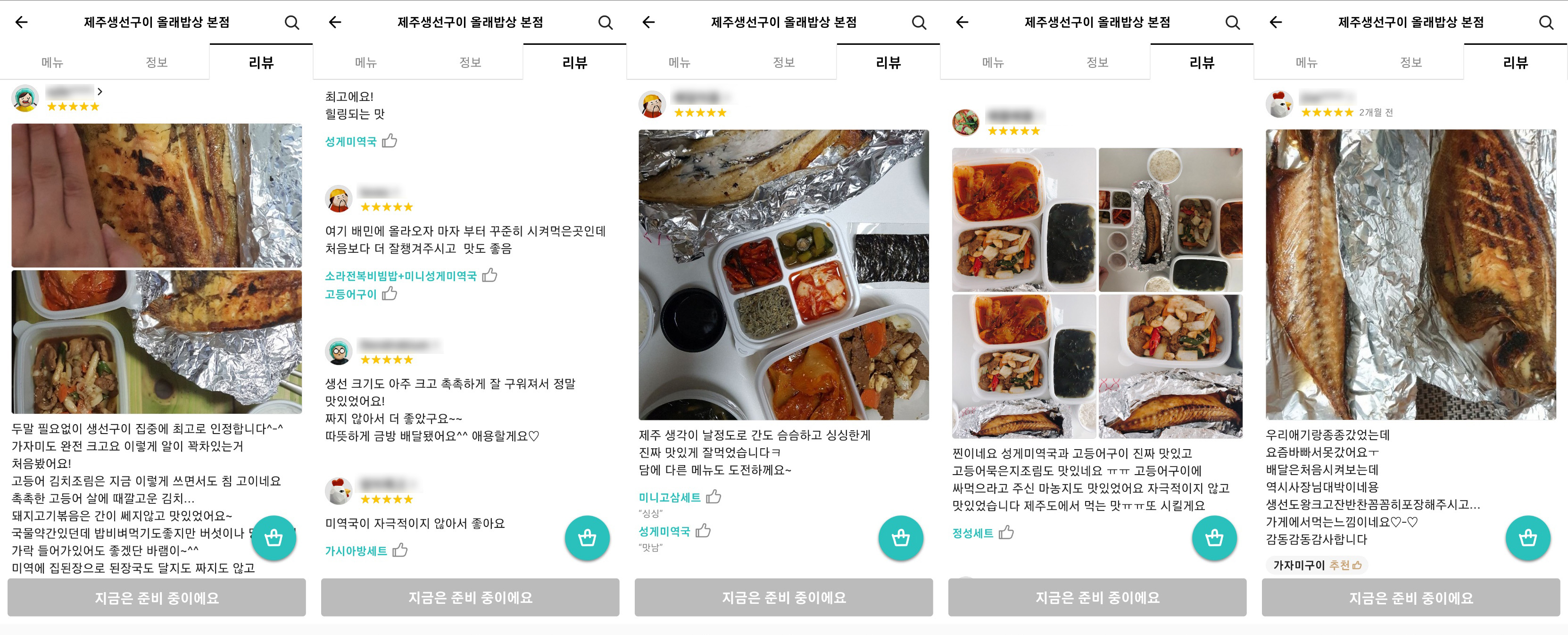 고등어구이 성게미역국 흑돼지볶음 고등어김치찜까지 이 구성으로